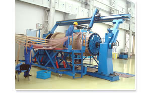 يستعمل هذا النوع من آلة لف السلك أفقيا في لف الفائف ذات مجولات بسعة كبيرة و مفاعل من 5 طن إلة 35