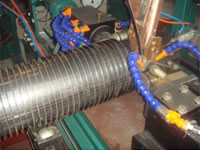 Cette machine est particulièrement adaptée pour fabriquer les tuyaux à ailettes de différents diamètres.